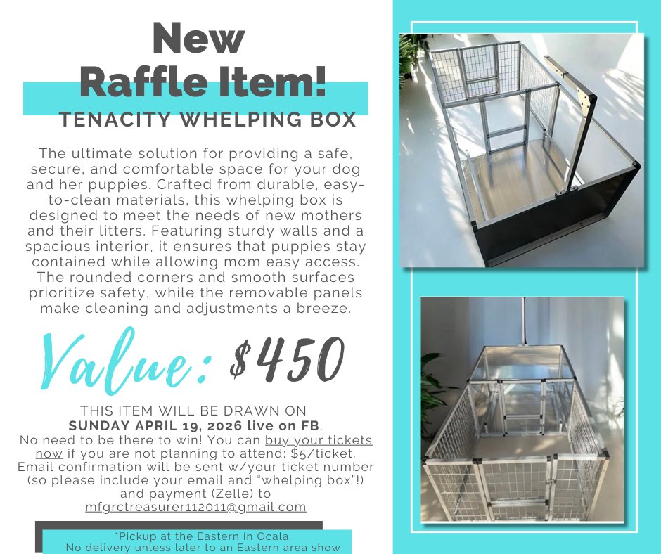 Include email address and "whelping box" in note.